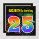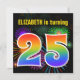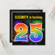 Este design de convite de aniversário vibrante e divertido apresenta um padrão de inspiração para fogos de artifício comemorativos coloridos, juntamente com o número "25", que inclui um espectro de inspiração multicolorido no arco-íris ou um padrão de gradiente. O nome na frente pode ser personalizado. A parte traseira apresenta informações personalizadas sobre a parte. Convites de festas de aniversários como este podem ser usados para convidar convidados para uma festa de aniversário que está sendo realizada para celebrar o vigésimo quinto aniversário de alguém. [~Z0000337]