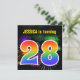 Este design de convite de aniversário vibrante e divertido apresenta um padrão colorido inspirado em fogos de artifício comemorativos que explodem, juntamente com o número "28", tendo um espectro de inspiração multicolorido no arco-íris ou um padrão de gradiente. O nome na frente pode ser personalizado. A parte traseira apresenta detalhes personalizáveis sobre a parte. Convites de festas de aniversários como este podem ser enviados a potenciais convidados para uma festa de aniversário que comemora o vigésimo oitavo aniversário de alguém. [~Z0000337]
