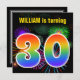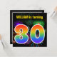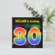 Este design de convite de aniversário vibrante e divertido apresenta um padrão colorido inspirado em fogos de artifício comemorativos que explodem, juntamente com o número "30", tendo um espectro multicolorido como o arco-íris ou um padrão de gradiente. O nome na frente pode ser personalizado. A parte traseira apresenta detalhes personalizados sobre a festa. Convites de festas de aniversários como este podem ser enviados para convidar convidados para uma festa de aniversário que comemora o trigésimo aniversário de alguém. [~Z0000337]
