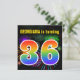 Este design de convite de aniversário vibrante e divertido apresenta um padrão inspirado em fogos de artifício celebratórios coloridos, junto com o número "36", tendo um espectro multicolorido como o arco-íris ou padrão de gradiente. O nome na frente pode ser personalizado. A parte traseira contém informações personalizáveis sobre a parte. Convites de festas de aniversários como este podem ser enviados a potenciais convidados para uma festa de aniversário que comemora o trinta e seis anos de alguém. [~Z0000337]