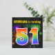 Este design de convite de aniversário vibrante e divertido apresenta um padrão inspirado em fogos de artifício celebratórios coloridos, juntamente com o número "51", tendo um espectro multicolorido como o arco-íris ou padrão de gradiente. O nome na frente pode ser personalizado. A parte traseira apresenta detalhes personalizados sobre a festa. Convites de festas de aniversários como este podem ser enviados para convidar convidados para uma festa de aniversário que comemora o cinquenta primeiro aniversário de alguém. [~Z0000337]
