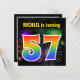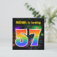Este design de convite de aniversário vibrante e divertido apresenta um padrão colorido inspirado em fogos de artifício comemorativos que explodem, juntamente com o número "57" com um espectro multicolorido como o arco-íris ou padrão de gradiente. O nome na frente pode ser personalizado. A parte traseira contém detalhes personalizados sobre a parte. Convites de festas de aniversários como este podem ser enviados a potenciais convidados para uma festa de aniversário que comemora os cinquenta e sete anos de alguém. [~Z0000337]