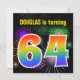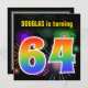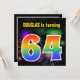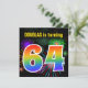 Este design de convite de aniversário vibrante e divertido apresenta um padrão inspirado em fogos de artifício celebratórios coloridos, junto com o número "64", que tem um espectro de inspiração multicolorido no arco-íris ou um padrão de gradiente. O nome na frente pode ser personalizado. A parte traseira contém informações personalizáveis sobre a parte. Convites de festas de aniversários como este podem ser enviados a potenciais convidados para uma festa de aniversário que comemora o sexagésimo quarto aniversário de alguém. [~Z0000337]
