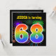 Este design de convite de aniversário vibrante e divertido apresenta um padrão inspirado em fogos de artifício celebratórios coloridos, juntamente com o número "68", que inclui um espectro multicolorido inspirado no arco-íris ou um padrão de gradiente. O nome na frente pode ser personalizado. A parte traseira contém informações personalizáveis sobre a parte. Convites de festas de aniversários como este podem ser enviados para convidar convidados para uma festa de aniversário que comemora o sexagésimo oitavo aniversário de alguém. [~Z0000337]