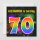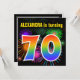Este design de convite de aniversário vibrante e divertido apresenta um padrão de inspiração para fogos de artifício celebratórios coloridos, juntamente com o número "70" com um espectro multicolorido inspirado no arco-íris ou padrão de gradiente. O nome na frente pode ser personalizado. A parte traseira apresenta detalhes personalizáveis sobre a parte. Convites de festas de aniversários como este podem ser usados para convidar convidados para uma festa de aniversário que está sendo realizada para comemorar o 70º aniversário de alguém. [~Z0000337]