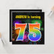Este design de convite de aniversário vibrante e divertido apresenta um padrão colorido inspirado em fogos de artifício comemorativos que explodem, juntamente com o número "75" que inclui um espectro multicolorido inspirado no arco-íris ou um padrão de gradiente. O nome na frente pode ser personalizado. A parte traseira apresenta detalhes personalizados sobre a festa. Convites de festas de aniversários como este podem ser enviados a potenciais participantes para uma festa de aniversário que se realiza para celebrar o setenta e cinco anos de alguém. [~Z0000337]