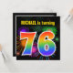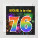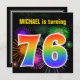 Este design de convite de aniversário vibrante e divertido apresenta um padrão inspirado em fogos de artifício celebratórios coloridos, junto com o número "76", que tem um espectro de inspiração multicolorido no arco-íris ou padrão de gradiente. O nome na frente pode ser personalizado. A parte traseira contém informações personalizadas sobre a parte. Convites de festas de aniversários como este podem ser enviados a potenciais convidados para uma festa de aniversário que comemora os setenta e seis anos de alguém. [~Z0000337]