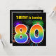 Este design de convite de aniversário vibrante e divertido apresenta um padrão inspirado em fogos de artifício celebratórios coloridos, junto com o número "80", que tem um espectro inspirado no arco-íris multicolorido ou um padrão de gradiente. O nome na frente pode ser personalizado. A parte traseira apresenta detalhes personalizáveis sobre a parte. Convites de festas de aniversários como este podem ser enviados para convidar convidados para uma festa de aniversário que comemora o oitavo aniversário de alguém. [~Z0000337]