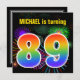 Este design de convite de aniversário vibrante e divertido apresenta um padrão colorido inspirado em fogos de artifício comemorativos que explodem, juntamente com o número "89", tendo um espectro de inspiração multicolorido no arco-íris ou um padrão de gradiente. O nome na frente pode ser personalizado. A parte traseira contém informações personalizadas sobre a parte. Convites de festas de aniversários como este podem ser usados para convidar convidados para uma festa de aniversário que está sendo realizada para celebrar o oitenta nono aniversário de alguém. [~Z0000337]