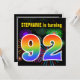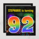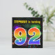 Este design de convite de aniversário vibrante e divertido apresenta um padrão inspirado em fogos de artifício celebratórios coloridos, juntamente com o número "92", tendo um espectro multicolorido como o arco-íris ou padrão de gradiente. O nome na frente pode ser personalizado. A parte traseira contém detalhes personalizados sobre a parte. Convites de festas de aniversários como este podem ser usados para convidar convidados para uma festa de aniversário que está sendo realizada para comemorar o 92º aniversário de alguém. [~Z0000337]