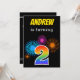 Este design de convite de aniversário vibrante e divertido apresenta um padrão colorido inspirado em fogos de artifício celebratórios, juntamente com o número "2" com um padrão de gradação inspirado no arco-íris multicolorido, num fundo de cor preta. O nome no nome frontal pode ser personalizado. A parte traseira contém informações personalizadas sobre a festa de aniversário. Convites de festas de aniversários como este podem ser usados ao convidar pessoas para uma festa celebrando o segundo aniversário de alguém. [~Z0000325]