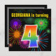 Convite Fireworks divertido + Rainbow Patterno "4" Anivers