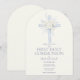 Convite First Holy Communion, Blue Floral Cross Arched