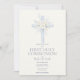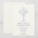 Convite First Holy Communion Invite, Blue Floral Cross