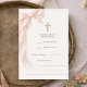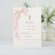 First Holy Communion pink bow girl RSVP invitation featuring a soft feminine design perfect for celebrating this sacred milestone. Ideal for honoring your daughter’s First Communion with elegant, faith-centered style. Suitable for church ceremonies, family gatherings, and formal receptions. Editable text for easy personalization. Print-ready layout.