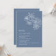 This elegant contemporary wedding invitation features white line art flowers and white script on a dusty blue background.
