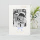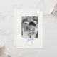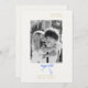 Chic e elegante. Este maravilhoso cartão de ponto apresenta um adorável arco de fita azul-aquática, fonte de ouro de imitação contemporânea contra fundo branco e foto de casal. Texto opcional no verso com detalhes repetidos de fita. Excelente e único, este cartão exclui um sentido de elegância, alegria e charme.