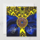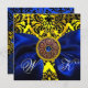 CONVITE FITA AZUL OURO AMARELO PRETO MONOGRAMA DAMASCO