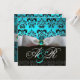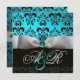 CONVITE FITA BRANCA AZUL TURQUESA PRETO DAMASCO MONOGRAMA