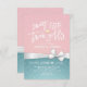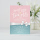 Garotas Gêmeas Doce - Modelos de Cartões de Convite para Chá de fraldas - Letras de Tipografia Manuscritas Elegantes com Fita Branca Vintage e Turquesa e Fundo Rosa. Todo estilo de texto, cores, tamanhos podem ser modificados para ajustado das suas necessidades!