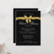 Convite de celebração de aniversário de cinquenta anos com design de laço dourado preto elegante. Convite preto formal com texto branco e laço. Todas as partes deste convite são impressas, sem fita real anexada.