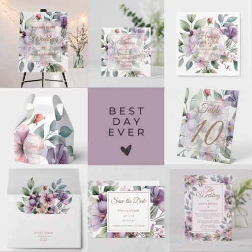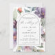 Apresentando nosso convite minimalista e moderado para o casamento, apresentando flores bonito em folhas roxas e verdes claras e mais, com um fundo elegante, criando uma busca limpa e na moda para seu dia especial.