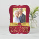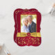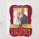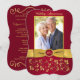Este convite de foto comemorativa de 50 anos de casamento, com flores em vermelho-carmesim e dourado, tem uma fita dourada IMPRESSA e uma medalha vermelha e dourada com aparência de gravura FALSA IMPRESSA. Possui uma área de modelo para você carregar sua própria foto digital. Você pode remover o texto estilizado em cursiva "Aniversário de Casamento" ou "50º". Todo o texto é personalizável, assim como as opções de papel. ALÉM DISSO, se você alterar as fontes ou tamanhos de fonte, seu texto pode não caber mais corretamente. A Zazzle não editará nada para erros de digitação, alinhamento ou qualquer outra coisa, e eu não verei seu convite. Tudo será impresso como aparece na tela do seu monitor. Se precisar de ajuda com o convite, por favor entre em contato comigo ANTES de fazer o pedido. Este convite foi projetado para se ajustar ao cartão de tamanho 5x7 com forma CURVA. Se você mudar para outro tamanho/forma, o design não se ajustará mais corretamente, então, se você quiser um tamanho