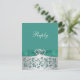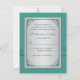 Este cartão de R.S.V.P. de casamento floral em cinza prateado e azul turquesa elegante e romântico tem uma fita e laço IMPRESSOS com um par de jóias de diamante IMPRESSAS e um broche de corações unidos com lantejoulas FALSAS (simuladas) que combina com os convites de casamento mostrados abaixo. O texto e o tipo de papel são personalizáveis. Alguns dos papéis podem alterar a cor do design. Eu NÃO usaria os papéis metálicos dourado, champanhe ou prata, pois eles escurecerão o design e descolorirão o branco dos diamantes sem adicionar nenhum brilho extra além do que você obteria com o papel metálico gelo. O papel feltro também descolorirá o design. ALÉM DISSO, se você redimensionar o convite, ou se você mudar as fontes, ou o tamanho da fonte, parte do design e/ou texto pode ser cortado. Tudo será impresso como você vê no seu monitor. Eu não verei seu convite, e a Zazzle NÃO irá corrigir nada (erros de digitação, desalinhamento, etc.). Se você precisar de ajuda com este convite, por favor me envie um e-mail ANTES de fazer o seu pedido. Se você precisar