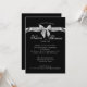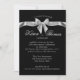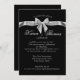 Elegante convite de comemoração de aniversário de cinquenta anos com laço e fita preta e prata. Convite preto formal com texto branco e laço. Todas as partes deste convite são impressas, sem fita real anexada.