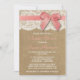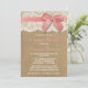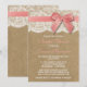 Essa fita rosa rustica com convites de chá de panela de arco, kraft e rendas fará o anúncio perfeito para qualquer noiva! A design apresenta um adorável fundo de efeito kraft rústico com uma trim romântica de efeito de renda branca vintage acabada com uma fita rosa impressionante com arco. Esses convites podem ser personalizados para sua ocasião especial e farão o anúncio perfeito para qualquer casamento rústico, chá de panela, festa de noivado, festa de aniversário e muito, muito mais. *Observe que o Zazzle só vende convites impressos para que esses convites não tenham nenhum lugar, arco ou fita real.