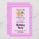 Este "Convite de aniversário 9.º Frameado por Stripes Cor-de-Rosa/Branca" apresenta um quadro listrado cor-de-rosa com um gráfico agradável. Prepare-se para aproveitar uma ocasião memorável, faça o pedido hoje!