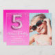 Convite "Five and Fabulous Pink Glitter Birthday Photo