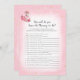 Desfrute deste jogo Quem Conhece melhor a Mamãe? chá de fraldas em um fundo cor-de-rosa suave com triângulos de ouro bonitos. Uma mamãe flamingo querido bailarina e um bebê no canto inferior esquerdo com flores rosa rosa rosa na cabeça e ao lado dos corpos. Modelos fornecidas atrás.