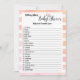 Cor aquosa, coral de pêssego feminino e fundo de listras brancas. Bonito, rosa, flamingo no meio da escrita "Chá de fraldas". Modelo criou apenas para vocês neste Jogo do Bebê Word Scramble com todas as palavras relacionadas a bebês são embaralhadas para que seus hóspedes tentem desembaralhar. *Uma folha de Chaves de Resposta está disponível mediante pedido. Apenas comente-me e posso enviar-lhe uma cópia por e-mail.*