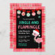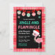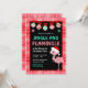 This cute and fun Christmas invitation features an adorable flamingo in a santa's hat and fairy lights on a pink and red plaid background. The text combines sans serif fonts for a stylish and modern look. Winter snowflakes and patterned baubles add a festive touch. This is perfect for a Christmas party.
