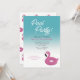 Fundo teal ombré para um convite de festas piscina com um flamingo flutuando no fundo. Devido às diferenças nos monitores e nas configurações de exibição do dispositivo, as cores impressas podem variar ligeiramente do que você vê na tela. Obrigado por visitar Walt & Ellie