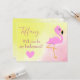 Um lindo design flamingo, este adorável "Você será minha dama de honra?" apresenta um lindo fundo de aquarela rosa e amarelo com um flamingo rosa à direita, de pé, alto e orgulhoso. Há uma personalização: "Você será minha dama de honra?" com um lugar para personalizar o nome dela. Há um coração cor-de-rosa por baixo do texto. Faça seu pedido hoje.