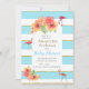 Flamingo Floral Blue e Faux Dourado Stripe Chá de fraldas. Este belo Flamingo e design Floral é uma design divertida para convidar seus amigos a celebrarem um chá de fraldas. Suas informações são facilmente inseridas no convite para chá de fraldas. Flores e Flamingos de Stripes Azuis são a base deste concurso moderno de Bebês. O chá de fraldas está em um texto azul.