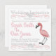 Convite de casamento bonito, de cor rosa, inspirado no flamingo, com flores impressas adequadas para o envio aos convidados do dia inteiro.