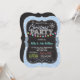 Um belo retro, colorido brilhante e divertido, chalkboard parece convite de festas de Natal em um padrão de floco de neve azul-claro. Apresenta as luzes do globo de Natal azuis, vermelhas, verdes e cor-de-rosa e os flocos de neve de inverno brancos. Vintage sente fontes de giz no fundo legal da lousa.