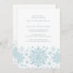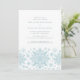 Flocos de neve de cor azul muito elegantes criam uma bonito borda ao longo do final deste convite de aniversário para adultos. A design moderna e minimalista tem uma sensação aberta e arejada. A estética contemporânea apelará a pessoas de todas as idades.