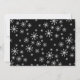 Design de floco de neve com um grande floco de neve branco rodeado por flocos de neve menores colocados sobre um fundo preto. Visite nosso compro para ver nossa coleção de flocos de neve.