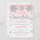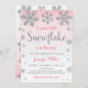 Convite Floco de neve de inverno Rosa e Chá de fraldas pra