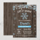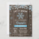 Convite Floco de Neve de Inverno Rústico Azul Menino Anive
