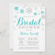 Chá de panela de inverno. Teal e Cinza Floco de Neve. Chá de panela de Natal Convide. Fundo Branco. Para mais personalização, clique no botão "Personalizar" e use nossa ferramenta de design para modificar este modelo.