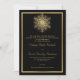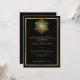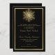 Um convite formal de casamento para o floco de neve de ouro elegante no inverno destacando um floco de neve ouro e um quadro de ouro sobre fundo negro. Um design ideal para um casamento de inverno ou Natal.
