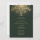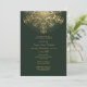 Convite de noivado de casamento de inverno verde com floco de neve dourado que apresenta um floco de neve dourado em fundo verde. Este design personalizado é um modelo totalmente personalizável e faz parte de um conjunto de casamento perfeito para um casamento de dezembro ou Natal de inverno.