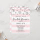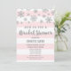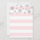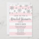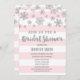 Convites de chá de panela para o inverno ou o Natal com flocos de neve prateados e faixas cor-de-rosa claro e esbranquiçadas.