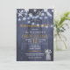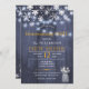 Festa elegante russa de inverno para aquecimento doméstico / modelo de convite para na moda de churrasco de sobre madeira azul escura de celeiro apresentando um monte de flores brancas para o hálito do bebê em vaso, uma borda de flocos de neve e cordas de luzes cintilantes. Você pode personalizá-lo alterando ainda mais as fontes e as cores das letras. — O convite é adequado para churrascos/festas elegantes e rusticados de inverno. — Se precisar de assistência, por favor, entre em contato comigo!
