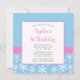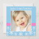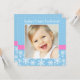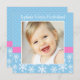 Um convite de aniversário de terra firme, rosa e azul, floco de neve, inverno. Faz um excelente convidar para uma festa de primeiro aniversario no inverno. Adicione facilmente sua própria foto e personalize com suas informações. Para redimensionar e posicionar sua foto, clique no botão "PERSONALIZAR TI".
